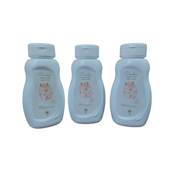 Bedak Hamster Anti Gatal dan Anti Kutu ukuran : 50 gr Bedak ini diformulasikan untuk semua jenis hamster / kucing bedak powder ini khusus hewan berbulu digunakan untuk mandi kering sehari-hari, dapat menyerap keringat dan tidak menggumpal. digunakan untuk : - membuat bulu hamster anda bersih - menghilangkan gatal - membasmi kutu