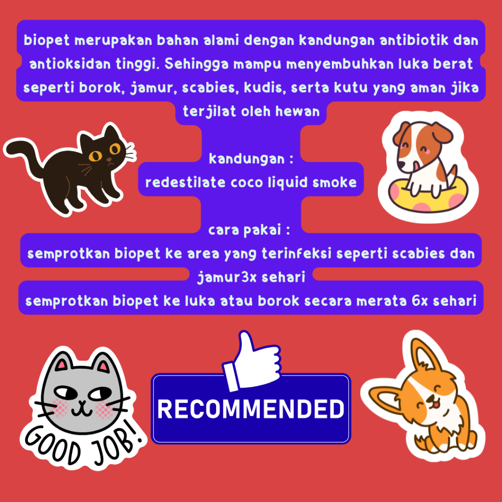 AMAN TERJILAT BIOPET 20ml - Obat Jamur Scabies Kucing Anjing Obat Khusus untuk Hewan Peliharaan: BIOPET 20ml dirancang khusus untuk mengatasi masalah jamur dan scabies pada kucing anjing kelinci dan hamster. Dengan kandungan yang tepat, obat ini membantu menjaga kesehatan hewan peliharaan Anda. Kemasan 20ml: Produk ini hadir dalam kemasan 20ml, cukup untuk penggunaan terbatas. Pastikan untuk mengikuti petunjuk penggunaan yang benar untuk hasil optimal.