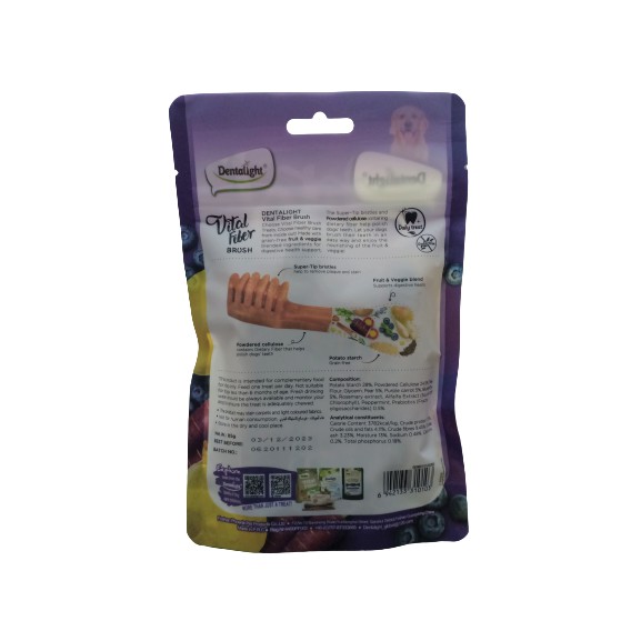 Snack Anjing Bentuk Brush Cemilan Anjing Merk : Dentalight - Vital Fiber Brush MEDIUM Pear, purple carriot & Blueberry harga yang tertera untuk 1 pack isi 5 pcs - grain free - baik untuk perawatan gigi