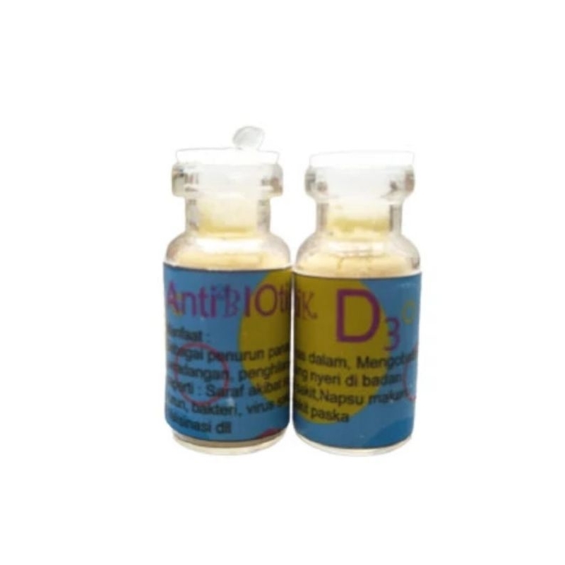Obat Kucing Antibiotik Kucing Obat Demam Kucing Obat Radang Kucing Obat Nyeri Kucing Merk : D3 dapat gigunakan untuk menyembuhkan penyakit : - Infeksi virus dan bakteri - Penurun demam - Penghilang nyeri saraf ( anti nyeri) - Menyembuhkan peradangan tenggorokan - Nafsu makan berkurang karena sakit Cara pakai: Ambil sejumput bubuk D3 (secuil saja), lalu campurkan dengan 2 sendok makan air putih, lalu minumkan dengan spuit / suntikan setelah makan. Berikan selama 3 hari berturut-turut.