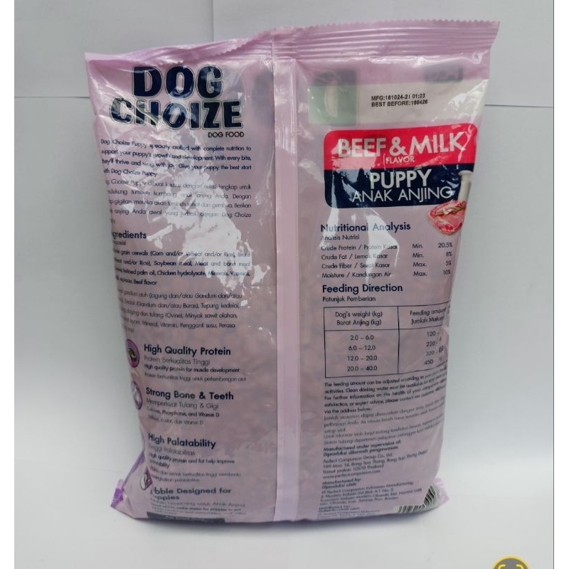 makanan anak anjing makanan puppy merk : dog choize puppy ukuran 800gr rasa beef and milk