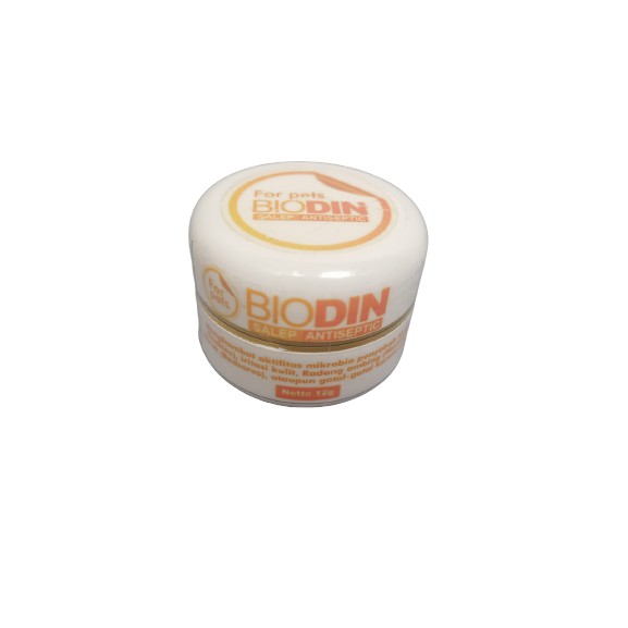 exp oct 2025 Obat Jamur Kucing / Anjing Obat Scabies Kucing / Anjing Obat Buduk Kucing / Anjing BIODIN SALEP Merk : BIODIN (SALEP) Ukuran : 12 gr digunakan untuk mencegah dan mengobati penyakit kulit yang disebabkan oleh bakteri, jamur dan parasit, serta luka akibat goresan dan cakar serta luka kulit lainnya yang berfungsi sebagai antiseptik luka. AMAN BAGI HEWAN menghambat aktivitas mikrobia penyebab kudis (scabies), iritasi kulit, radang ambing (masitis), borok (bedsores) ataupun gatal-gatal karena alergi.