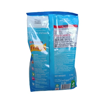 Makanan Kucing FRISKIES Kemasan Freshpack Merk : Friskies - SEAFOOD SENSATIONS Ukuran : 1.1 kg sensasi makanan laut : tuna, salmon, snapper, crab dan shrimp