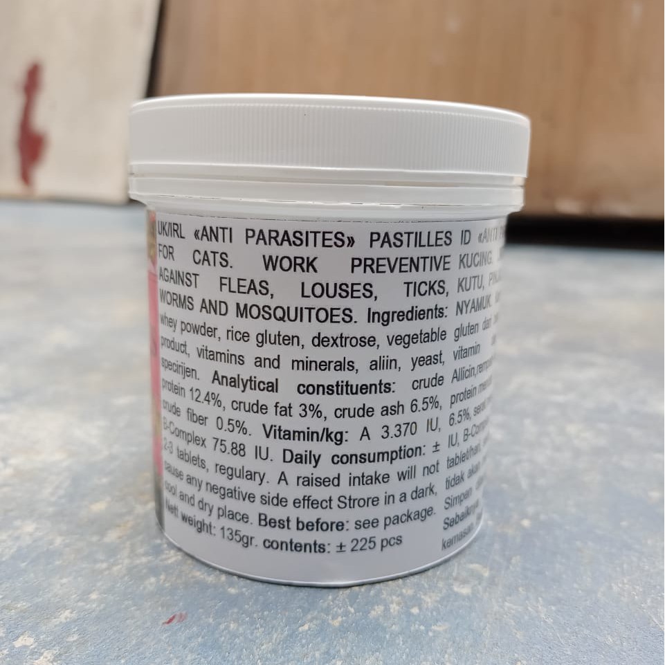KEMASAN REPACK YA Vitamin Kucing Vitamin Penangkal Kutu Vitamin Anti Kutu Kucing Suplemen Kutu Kucing Merk : Kis-Kis KEMASAN REPACK 1 pack isi 5 butir harga yang tertera untuk 1 pack yaa PROTEIN : 12,4% FAT : 3% MADE IN HOLLAND 100% menggunakan BAHAN ALAMI digunakan untuk mencegah kutu, pinjal, caplak, cacing, dan nyamuk, mendukung jantung dan pembuluh darah yang sehat serta mengurangi tingkat kolesterol kucing. INI BUKAN OBAT, tapi vitamin tambahan untuk mencegah kutu dari dalam tubuh kucing :) cara pakai : bisa ditumbuk / gerus dan ditaburkan di makanan, atau mau dikasih langsung ke mulut kucing juga bisa gunakan 2 - 3 tablet dalam sehari