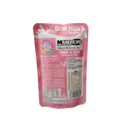 Makanan Basah MARKOTOPS POUCH ADULT 85gr TUNA & BEEF Goat Milk