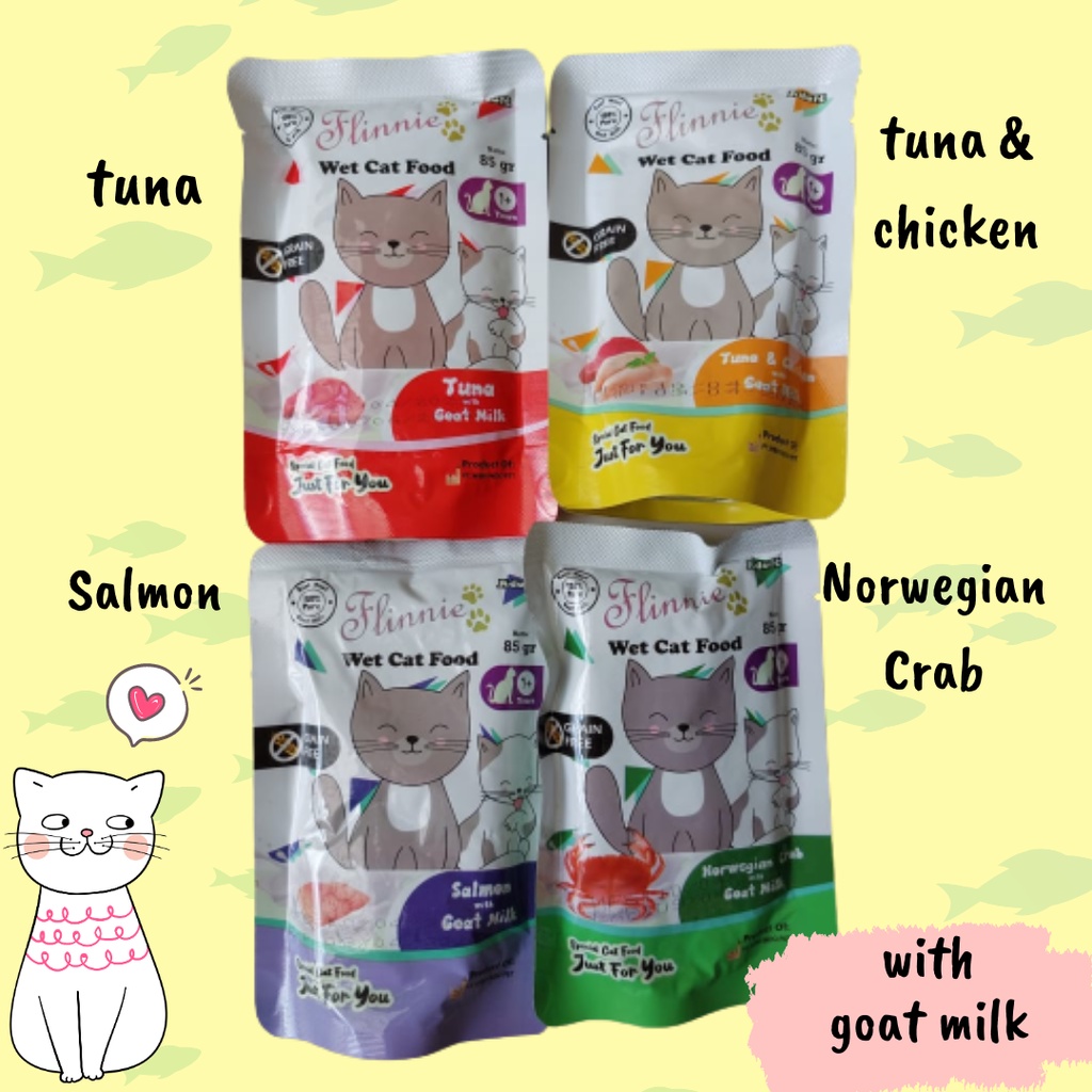 Makanan Kucing Basah Makanan Kucing Pouch Makanan Kucing Dewasa Merk : Flinnie - Adult Ukuran : 85 gr tersedia varian : tuna, tuna with chicken, salmon, norwegian crab silahkan pilih varian yang diinginkan, jika varian kosong, maka akan kami konfirmasi lebih lanjut (jika tidak ada balasan akan kami kirim sesuai stok yang ada yaa ~)
