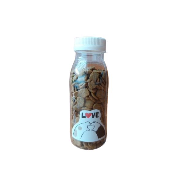Ukuran botol 100ml berat sekitar 50 gr harga untuk 1 botol dapat dibawa di dalam tas / kendaraan untuk memberi makan kucing jalanan :) isi makanan kucing nya merk random yaa kak :)