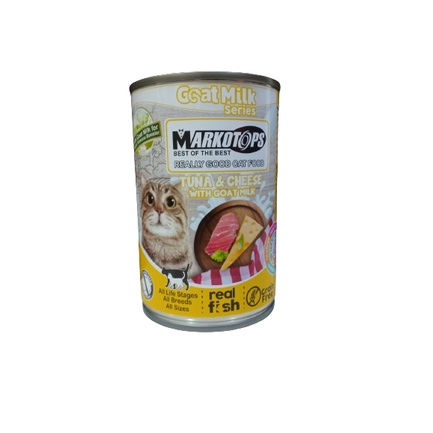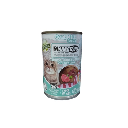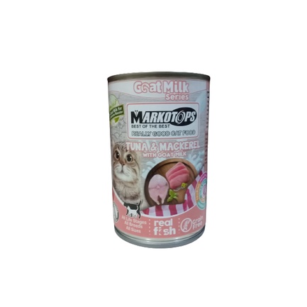 Makanan Kucing Basah Makanan Kaleng Kucing Merk : MARKOTOPS - GOAT MILK SERIES Ukuran : 400 gr Untuk segala usia, ras, dan ukurang kucing varian : - tuna mackerel - tuna smoked tuna - tuna cheese semua varian with goat milk GRAIN FREE