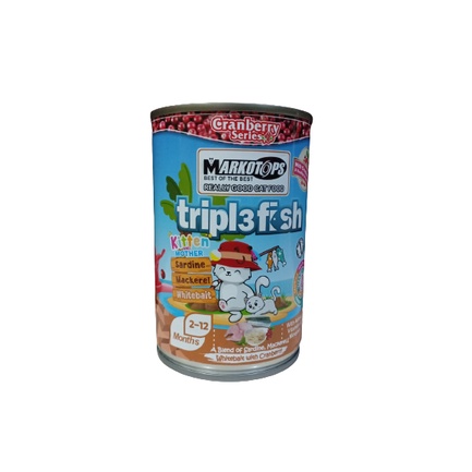 Makanan Kucing MARKOTOPS TRIPLE FISH KITTEN CRANBERRY SERIES 400gr