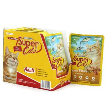 supercat pouch 85g saset tersedia untuk dewasa dan kitten dewasa: *tuna chicken *tuna prawn *ocean fish *tuna kitten : *tuna *tuna whitefish *ocean fish *tuna chicken protein 11% lemak 1% serat 1% kitten 1-12bulan dewasa diatas 12bulan
