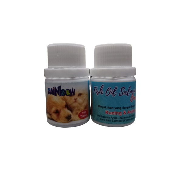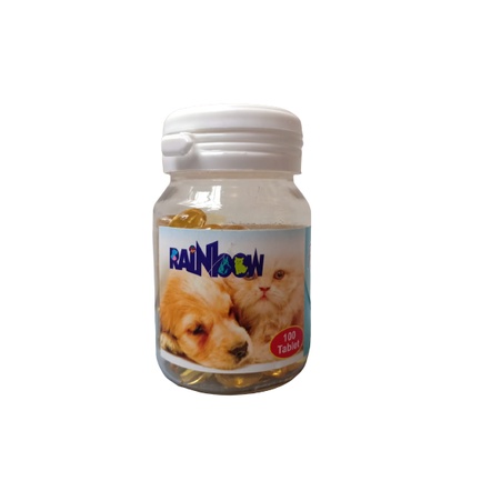 Minyak ikan untuk Kucing dan Anjing Vitamin Kucing Vitamin Anjing Minyak Ikan Salmon Omega + Merk : Rainbow Ukuran : 1 botol isi 100 tablet