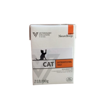 Makanan Basah untuk Masalah Pencernaan / Gastrointestinal merk : NATURE BRIDGE ukuran : 190gr NO PORK, GLUTEN FREE digunakan untuk mengobati muntah, diare, konstipasi, kehilangan berat badan, sakit perut, infeksi saluran pencernaan seperti Lambung / Usus ) Protein mudah di cerna dengan palatabilitas sangat tinggi