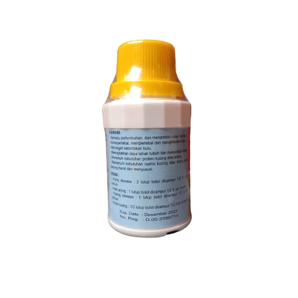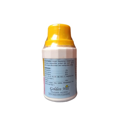 Multivitamin Kucing Multivitamin Anjing Vitamin Pertumbuhan Kucing Vitamin Pertumbuhan Anjing Neovitamax : suplemen modern yang dilengkapi Astaxanthin, protein, dan asam amino yang sangat dibutuhkan oleh kucing atau anjing indikasi : - memacu pertumbuhan dan menambah nafsu makan - mempertebal dan mengkilapkan bulu - mencegah kerontokan bulu - meningkatkan daya tahan tubuh dan menambah darah - memenuhi kebutuhan protein kucing atau anjing - memenuhi kebutuhan nutrisi kucing atau anjing yang sedang hamil dan menyusui dosis : - anjing dewasa : 2 tutup botol dicampur 1/2 liter air minum - anak anjing : 1 tutup botol dicampur 1/2 liter air minum - kucing dewasa : 1 tutup botol dicampur 1/2 liter air minum - anak kucing : 1/2 tutup botol dicampur 1/2 liter air minum dapat diminumkan langsung dan dicampurkan pakan kering ataupun basah. **KOCOK DAHULU SEBELUM DIGUNAKAN**
