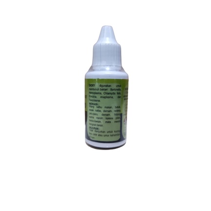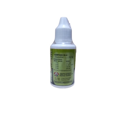 Obat Antibiotik Pencernaan Kucing Obat Kucing Diare merk : DIOXY Cat ukuran : 30 ml digunakan untuk membunuh bakteri : Bartonella, Hemoplasma, Chlamydia felis, Ehrlichia, Anaplasma, dan Toxoplasma. indikasi : hilang nafsu makan, batuk, sesak nafas, demam, radang paru-paru, demam, hidung warna merah karena pilek, bersin-bersin, mata merah, bengkak berair. anjuran : tidak dianjurkan untuk kucing baru lahir atau umur kehamilan 45 hari dosis dapat dilihat pada kemasan diberikan 3-5 hari berturut-turut