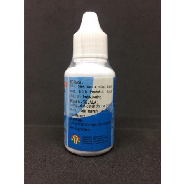 Indikasi: Batuk, pilek, sesak nafas, batuk karena alergi, batuk berdahak, batuk dengan infeksi, batuk kering Gejala: Kucing batuk-batuk disertai gejala bersin, mata merah, dan berair serta demam Dosis 3-5 tetes, 3x sehari, diberikan 5-7 hari