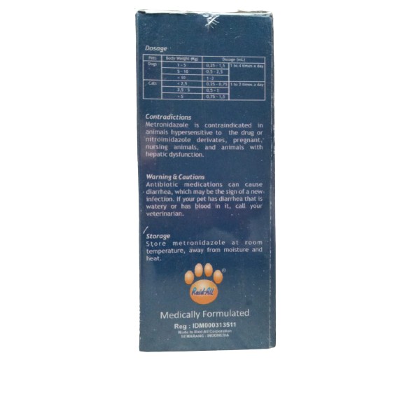 Obat Diare Kucing / Anjing Obat Diare Kucing Tetes Obat Mencret Kucing Merk : Pet Metronidazole / Diarrhea Medication Raid All Ukuran : 20 ml Cara pemakaian tergantung berat badan, Untuk anjing : berat badan 1 - 5 kg : 0.25 - 1 ml berat badan 5 - 10 kg : 0,5 - 2,5 ml berat badan > 10 kg : 1 - 3 ml diberikan 1 - 4 kali sehari (tergantung kondisinya) untuk kucing : berat badan < 2.5 kg : 0.25 - 0.75 ml berat badan 2.5 5 kg : 0.5 - 1.0 ml berat badan > 5 kg : 0.75 - 1.5 ml diberikan 1 - 2 kali sehari (tergantung kondisinya)