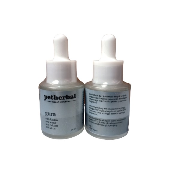 Obat Pilek Kucing Obat Flu Kucing Obat Ingusan Kucing merk : Pet Herbal GURA ukuran : 20 ml GURA merupakan obat flu pilek herbal yang terbuat dr 100% bahan alami. dapat digunakan untuk membersihan lendir atau ingus di hidung kucing sehingga napas kucing tidak mampet. manfaat : - menjaga sistem imun - sebagai obat anti jamur - sebagai obat flu atau pilek - sebagai obat luka ringan - sebagai obat hidung tersumbat - sebagai gurah lendir di hidung cara pakai : - teteskan 1 pipet setiap hari ke mulut kucing, dikombinasikan dengan 2 tetes di tiap lubang hidung kucing setiap 1 jam sekali, lakukan berkala *simpan di tempat kering jauhi dari sinar matahari langsung* gura terbuat dari kombinasi minyak organik yang mengandung banyak enzim dan vitamin yang terjaga utuh karena proses pembuatan yang alami. gura mengandung antioksidan yang tinggi, sehingga berfungsi sebagai anti bakteri, anti jamur, anti virus sehingga mampu menjaga sistem imun gura memiliki kandungan 100% bahan alami seperti EVCO & mint oil, sehingga aman digunakan dalam jangka panjang