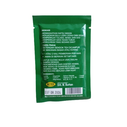 Penggemuk Kucing Cat Fattener Protein Kucing Vitamin Kucing Merk : Body BIG SACHET ukuran : 20 GRAM Penggemuk kucing dengan vitamin komplit dan kalsium berbentuk serbuk - dapat digunakan untuk kucing mulai umur 2 bulan hingga dewasa - baik digunakan untuk kucing yang sedang hamil, agar pertumbuhan baby kucing menjadi lebih kuat - meningkatkan nafsu makan - menjadiakn bulu lebih cerah dan sehat - memperkuat tulang, sendi, dan gigi - memulihkan yang sedang sakit Cara pakai : - campurkan body big di makanan (basah / kering) sebanyak 1/2 sendok teh per sekali takaran makan. - 2x sehari - aman diberikan setiap hari