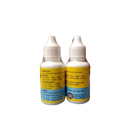 Vitamin Penggemuk Kucing Vitamin Kucing Penambah Nafsu Makan Merk : PET STIMULANT Ukuran : 30 ml indikasi : - menambah nafsu makan - memperkuat daya tahan tubuh - memulihkan kondisi sehabis sakit ** biasanya digunakan untuk kucing setelah sakit dalam kondisi pemulihan aturan pakai : - kucing besar : 6 tetes - kucing sedang : 4 tetes - kucing kecil : 2 - 3 tetes diberikan 3x sehari sampai pulih diberikan SEBELUM Makan