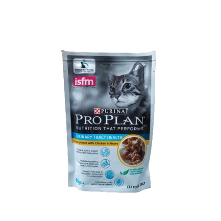 Makanan Basah Kucing Makanan Kucing Basah Urinary Tract merk : PROPLAN - URINARY TRACT Chicken in Gravy ukuran : 85gr harga yang tertera untuk 1 sachet (85 gr) digunakan untuk membantu kesehatan Saluran Kemih (urinary)