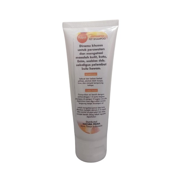 Shampoo Kucing / Anjing Shampoo Hewan Shampoo Antiseptik Shampoo Kutu - Shampoo Scabies - Shampoo Pelembut Bulu Kucing / Anjing Merk : PetaPeto Ukuran : 75 ml Diramu khusus untuk perawatan dan mengatasi masalah kulit, kutu, exim, scabies, dsb. Sekaligus pelembut bulu hewan. Komposisi: Terbuat dari bahan herbal pilihan, ekstrak lidah buaya, lime dan minyak tempurung kelapa Cara Pakai: Campurkan air bersih dengan perbandingan 1:5 (satu bagian shampoo di campur 5 bagian air) jika diperlukan bisa digunakan secara langsung tanpa dicampur air. Untuk mengatasi jamur dan kutu diamkan terlebih dahulu 3-5 menit atau sambil dipijat-pijat lalu bilas sampai bersih. ulang sekali lagi jika diperlukan.