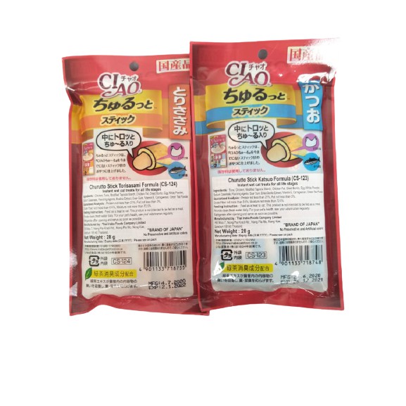 Snack Kucing Cat Treats Cemilan Kucing Cat Snack Merk : CIAO CHURRUTO 1 pack isi 4 stik Harga yang tertera untuk 1 pack Varian : Torisasami ; Katsuo ; Maguro dengan tambahan vitamin dan ekstrak green tea. Mohon cantumkan varian yang diinginkan, atau tanyakan stok terlebih dahulu yaa :) *Bebas bahan kimia atau perwarna makanan