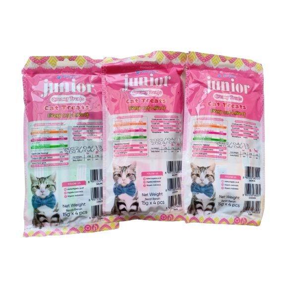 Snack Kucing JUNIOR CREAMY TREATS (4 x 15gr) Snack Kucing Cair