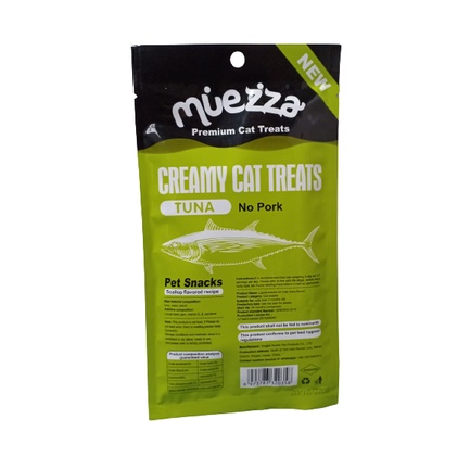 ** TANGGAL YANG TERTERA ADALAH TANGGAL PRODUKSI YAA ~ tanggal expired nya 24 bulan dari tanggal produksi selama kemasan belum dibuka ~ Snack Kucing Creamy Treats Merk : Muezza Ukuran : 1 pack isi 4pcs @15gr Harga yang tertera untuk 1 pack Varian : - tuna - salmon - scallop