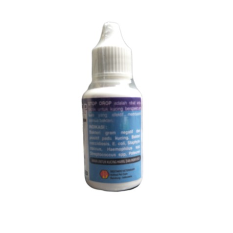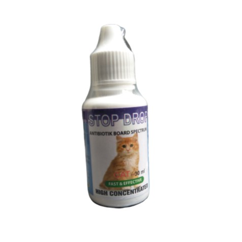 STOP DROP Cats diformulasikan khusus dengan formula terkini untuk menumpas bakteri dan virus yang berkembang pada kucing. Antibiotik ini digunakan ketika kucing panas/demam, panas dalam, radang, tiba2 lemas dan tidak mau makan, susah bergerak/diam saja. Indikasi : Bakteri coccidiosis ( penyebab berak darah), E. coli ( penyebab diare demam mual tidak nafsu makan ), Staphylococcus ( menyebabkan infeksi jaringan tubuh ), Haemophilus spp ( penyebab influenza dan radang paru), Streptococcus spp ( pnyebab radang tenggorokan dan infeksi seluruh tubuh ), Pateurella ( bakteri pada kucing yang membahayakan manusia jika menggigit), Proteus Mirabillis ( infeksi kemih dan diare ) Aman untuk Kitten usia diatas 6 minggu. Bila masih minum ASI, berikan Stop Drop pada induknya Dosis dan cara pemakaian : - Kucing berat sampai 3 Kg .... 3 tetes 3x sehari selama 5 hari berturut-turut - Kucing berat sampai 6 Kg .... 6 tetes 3x sehari selama 5 hari berturut-turut - Kucing berat sampai 12Kg .... 12 tetes 3x sehari selama 5 hari berturut-turut Catatan kalau belum 3 hari kucing sudah sembuh, tetap berikan obat ini sampai minimal 3 hari berturut-turut.