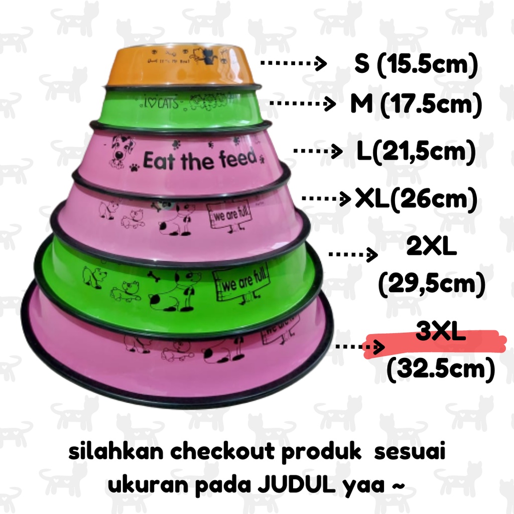 Tempat Makan Kucing / Anjing Ukuran : 3XL diameter dalam : 24 cm diameter luar : 32.5 cm ukurannya kurang lebih yaa warna yang dikirim random sesuai stok yang ada ~ tersedia ukuran lain, silahkan dicek pada etalase yaa