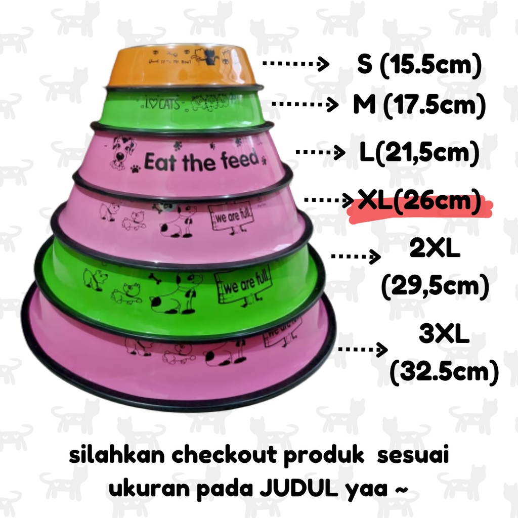 Tempat Makan Kucing / Anjing Ukuran : XL diameter dalam : 18 cm diameter luar : 26 cm ukurannya kurang lebih yaa warna yang dikirim random sesuai stok yang ada ~ tersedia ukuran lain, silahkan dicek pada etalase yaa