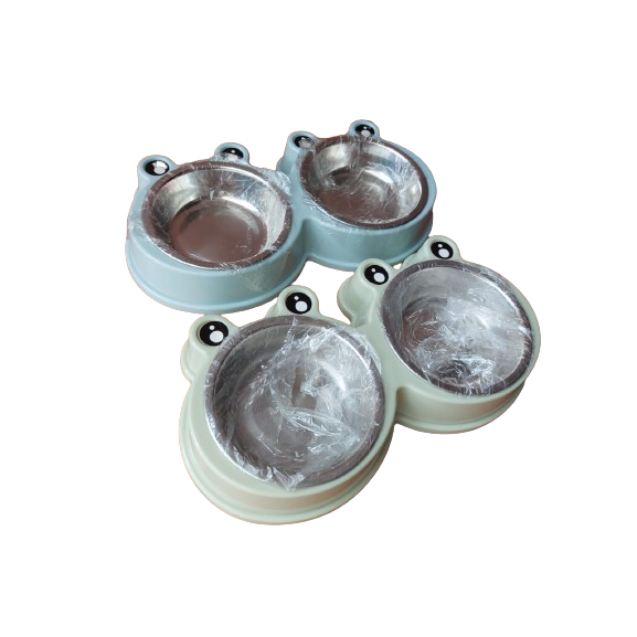 Tempat Makan Kucing Double Stainless BENTUK KODOK harga yang tertera sudah termasuk stainless ya Ukuran diameter dalam stainless +/- 10cm tinggi stainless +/- 2.5 cm warna dikirim random. Jika ingin warna tertentu, silahkan tanya stok terlebih dahulu yaa ~