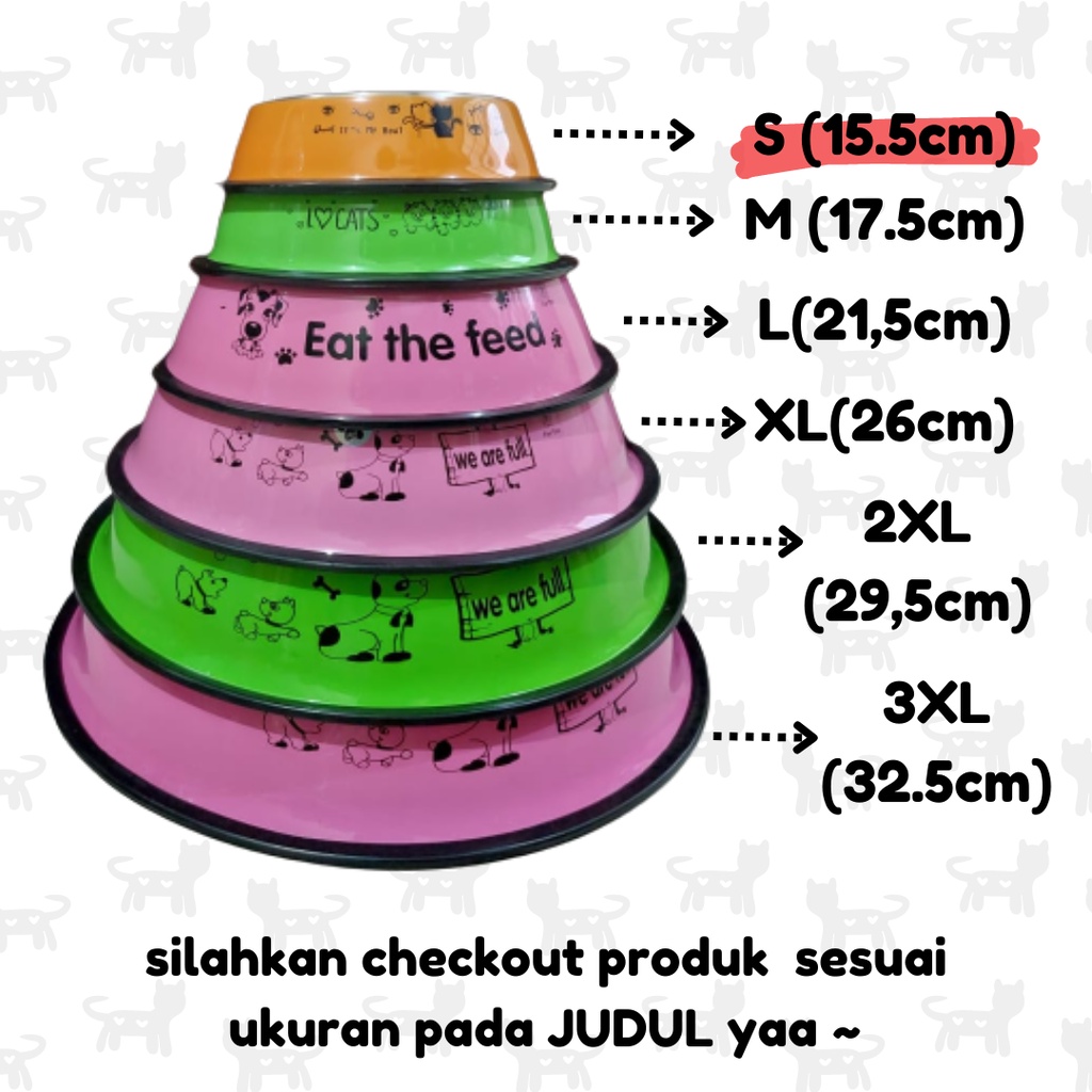 Tempat Makan Kucing / Anjing Ukuran : S diameter dalam : 10,5 cm diameter luar : 15,5 cm ukurannya kurang lebih yaa warna yang dikirim random sesuai stok yang ada ~ tersedia ukuran lain, silahkan dicek pada etalase yaa