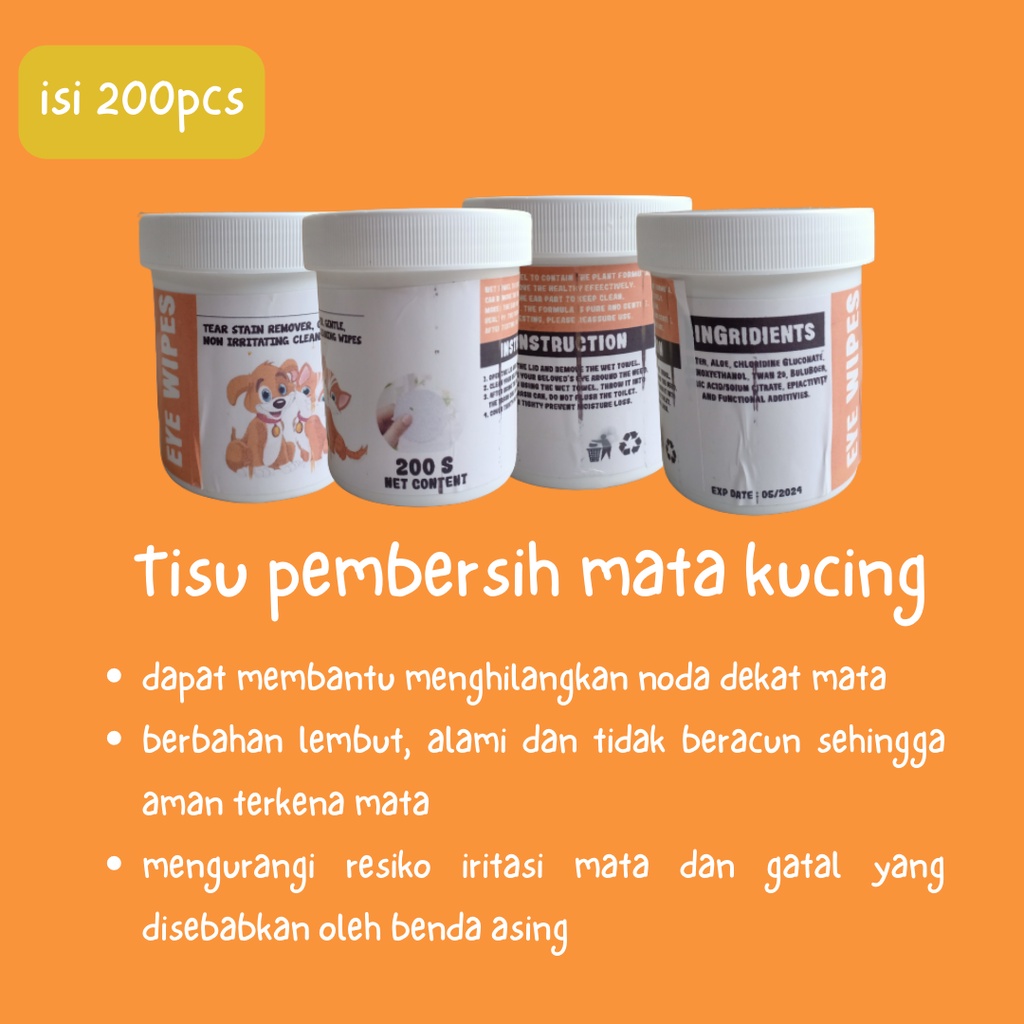 Pembersih Mata Anjing / Kucing isi 200 pcs aman digunakan, dapat menghilangkan kotoran dan noda lainnya di area mata hewan