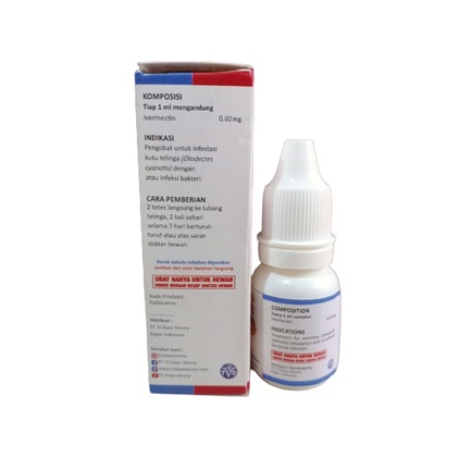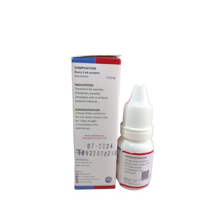 Obat Tetes Telinga Kucing Obat Kutu Telinga Kucing Merk : Vet Otic Ukuran : 10ml digunakan untuk mengobati infestasi kutu telinga dengan atau infeksi bakteri cara pemberian : 2 tetes langsung ke lubang telinga, 2x sehari selama 7 hari berturut-turut atau atas saran dokter hewan kocok dahulu sebelum digunakan