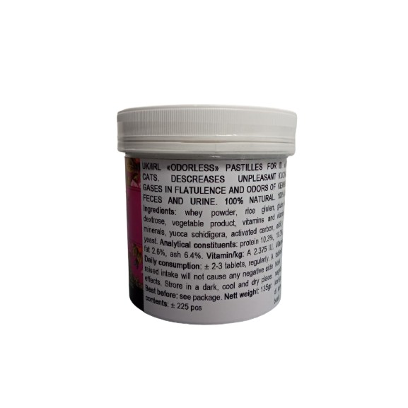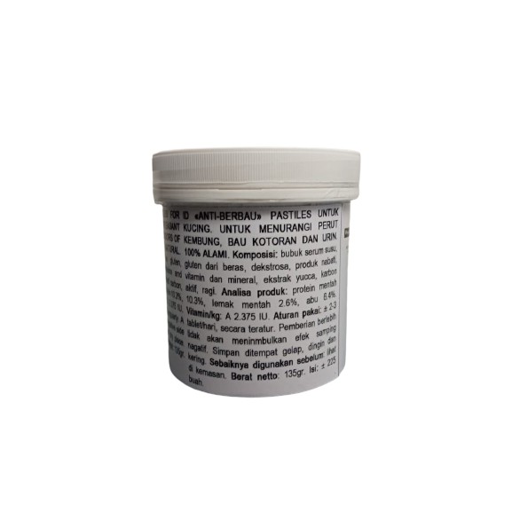 Vitamin Kucing Suplemen Tambahan Kucing Merk : Kis-kis ODORLESS REPACK isi : 5 butir 100% ALAMI harga yang tertera untuk 5 butir vitamin yaa digunakan untuk mengatasi perut kembung, diare, gejala alergi pakan, dan pup bau menyengat, dapat dikonsumsi oleh kucing semua usia (all life stages) keunggulan vitamin kiskis odorless : - mengandung karbon aktif (jadi kalo pupnya berwarna gelap (coklat tua / abu abu/ hitam) gapapa, karena ada karbon aktif yang menyerap racun dan zat asing dalam saluran cerna) - mengandung ekstrak alami untuk mengurangi bau kotoran dan urin - menghilangkan bau menyengat pada kotoran dan urin - mencegah diare atau pup lembek karena radang dan alergi makanan - menyerap dan mengeluarkan racun dari tubuh - mengatasi alergi pakan - mengurangi perut kembung - dapat meningkatkan nafsu makan - lezat, disukai kucing jadi bisa langsung dimakan Cara pemakaian : Kucing dewasa berikan 2-3 tablet per hari Kitten 2-6 bulan berikan 1 tablet per hari Dapat diberikan 10-30 menit sebelum makan